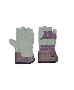 Экономичные перчатки, комбинирванные х/б ткань со спилком. Спилок КРС, 1,0 +/- 0,2 мм, серого цвета (2 и 3й слой спилка). Флисовая подкладка в наладонной части. Манжет - жесткая крага.