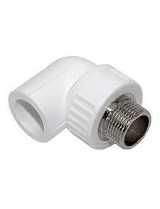 Используется для соединения полипропиленовой трубы и элемента системы с резьбовым соединением. Специально разработанная конструкция комбинированного уголка обеспечивает высокую степень надежности соединения полипропиленовой части с металлическим закладным элементом. Обратные проточки металлических частей обеспечивают более герметичное соединение, даже при повышенных механических нагрузках и улучшают гидравлические характеристики фитинга.