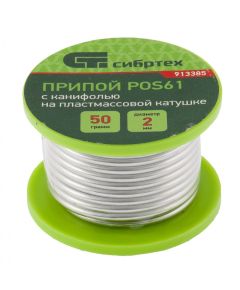 Припой с канифолью POS61 Сибртех 913371, диаметром 1,5 мм, весом 10 г, в пластмассовой тубе, — материал для пайки, в расплавленном состоянии соединяющий металлические детали. Содержит 39% свинца, олово и канифоль, не требует очистки припаиваемых поверхностей. Будет полезен для бытового ремонта...