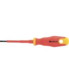 Отвертка Insulated SL4,0x100 мм MATRIX 12916 предназначена для работы с резьбовыми соединениями, находящимися под напряжением. Благодаря диэлектрическому покрытию отвертка выдерживает напряжение до 1000 В. Стержень изготовлен из CrMo стали, что обеспечивает надежность и долгий срок службы...
