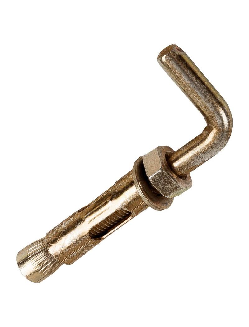 Анкерный болт с крюком используется для вывешивания тяжеловесных съемных конструкций или временного крепления такелажных изделий, таких как тросы, цепи и др. к бетону, кирпичу или природному камню.