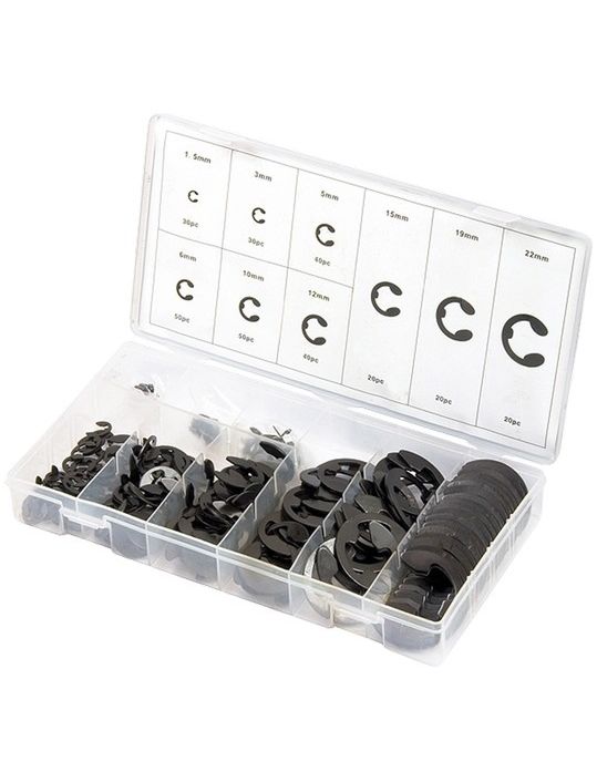 Набор стопорных колец D 1,5 - 22 мм 300 предметов СИБРТЕХ 47601 предназначен для фиксации деталей на валах в различных областях деятельности. В комплект входит 300 стопорных колец из стали самых различных размером. Кейс выполнен из пластика, оснащен отсеками.