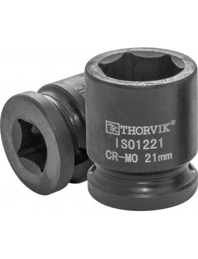 Головка торцевая ударная 1/2"DR, 21 мм. Торцевые головки Thorvik изготовлены с применением технологий, позволяющих передавать усилия, превышающие расчетные по современным стандартам на 30%. Широкий диапазон размеров, типов и профилей, высокая точность обработки, качественная хромомолибденовая сталь (Cr-Mo) и устойчивое фосфатированное покрытие делают инструмент надежным и долговечным. Торцевые головки Thorvik являются основной для создания систем сборного слесарно-монтажного инструмента. Имеет отверстие для фиксирующего штифта и выточка для уплотнительного кольца.
