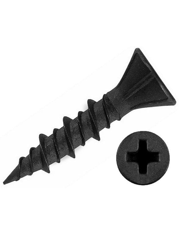 Саморезы по ГВЛ или если говорить без аббревиатур по гипсоволоконным плитам имеет достаточно интересную двух заходную структуру резьбы, между витками с крупной резьбой проходят витки более мелкой резьбы. Такая конструктивная особенность обусловлена с целью более надежного и прочного крепления.Шляпка потай под биту PH-2.