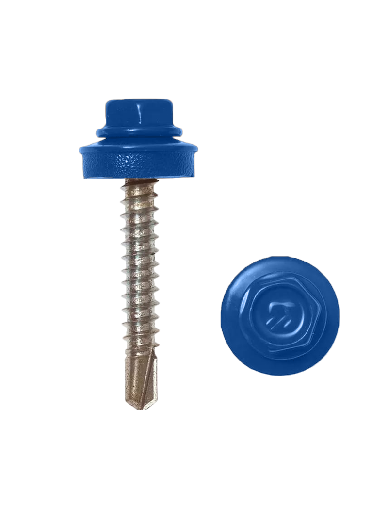 Кровельные саморезы окрашенные (RAL) применяются при креплении профнастила и металлочерепицы к конструкциям из металла и древесины. Они обеспечивают надежную фиксацию покрытия и эстетичный вид. Цветные саморезы со сверлом представлены в двух диаметрах и широком диапазоне длин. Крепеж с резьбой 5.5 мм используется на металлических основаниях, а с резьбой 4.8 мм – на деревянных, так как имеет укороченное сверло и более широкий шаг резьбы.