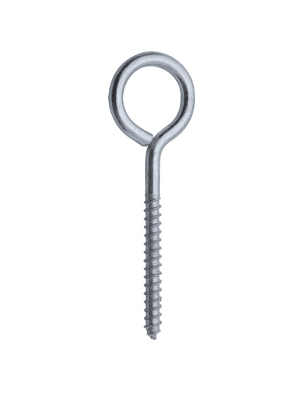 Шуруп-кольцо используется, в основном, при монтировании несъемных подвесных конструкций, например, фонари, кабели и т.д. Изделие изготовлено из стальной проволоки. С одной стороны имеется широкая резьба, с другой - проволока изогнута в замкнутое кольцо, однако стоить помнить, что оно не заварено. Данный шуруп отлично подходит для работы с древесиной, но вкручивать крепеж стоит лишь после предварительно просверленного отверстия. Для установки в бетонные конструкции целесообразно использовать распорные дюбеля.