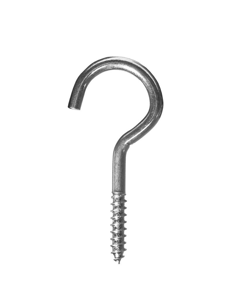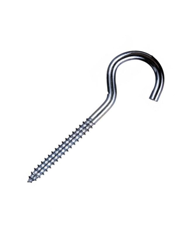 Шуруп-полукольцо используется, в основном, при монтировании несъемных подвесных конструкций, например, фонари, кабели и т.д. Изделие изготовлено из стальной проволоки. С одной стороны имеется широкая резьба, с другой - проволока изогнута в крюк. Данный шуруп отлично подходит для работы с древесиной, но вкручивать крепеж стоит лишь после предварительно просверленного отверстия. Для установки в бетонные конструкции целесообразно использовать распорные дюбеля.