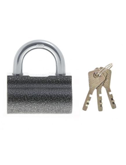 Замок навесной повышенной секретности. Общего применения. Высокопрочный корпус и стальная закаленная заглубленная дужка значительно затрудняют возможность взлома. Механизм секрета расположен сбоку. В комплекте 3 ключа.