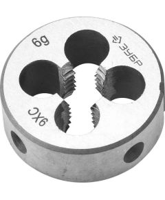 Круглая ручная плашка для нарезания метрической резьбы, мелкий шаг, М10x1,25 выполнена из легированной стали 9ХС. Сплав дополнен хромом, кремнием и углеродом для большей жесткости. Инструмент оснащен глубокими отводами для стружки, что сохраняет чистоту реза.