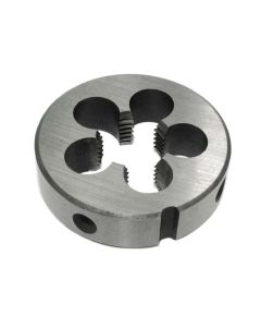 Круглая ручная плашка для нарезания метрической резьбы, мелкий шаг, М10x1,25 выполнена из легированной стали 9ХС. Сплав дополнен хромом, кремнием и углеродом для большей жесткости. Инструмент оснащен глубокими отводами для стружки, что сохраняет чистоту реза.