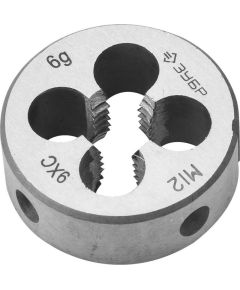 Круглая ручная плашка для нарезания метрической резьбы, мелкий шаг, М10x1,25 выполнена из легированной стали 9ХС. Сплав дополнен хромом, кремнием и углеродом для большей жесткости. Инструмент оснащен глубокими отводами для стружки, что сохраняет чистоту реза.