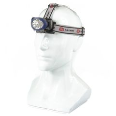 Фонарь выполнен из пластика. Десять светодиодов обеспечивают яркое и длительное свечение, а три режима яркости позволяют сэкономить заряд элементов питания. Ремешок фонаря имеет три полудуги для лучшей фиксации на голове и возможность регулировки обхвата.