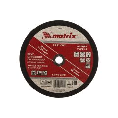 Отрезной круг по металлу Matrix A30QBF 74355, 230 х 2,5 х 22,2 мм, оптимально подходит для сухого реза углеродистых сталей. Он устанавливается на углошлифовальные машины с посадочным диаметром 22,2 мм. Круг рассчитан на бытовое использование в частной мастерской или гараже.