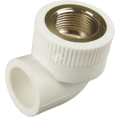 Комбинированный угловой фитинг с креплением, предназначенный для подсоединения к полипропиленовому трубопроводу сантехнического смесителя или другого компонента инженерной системы с резьбовым подключением.