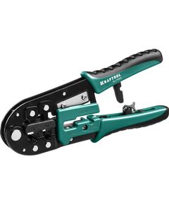 Универсальный кримпер, со встроенным кабелерезом, съемником изоляции и ограничителем KRAFTOOL 22698 позволяет проводить сложные электротехнические работы с использованием единственного инструмента. Простота эксплуатации обеспечена удобными рукоятками и плавным ходом губок.