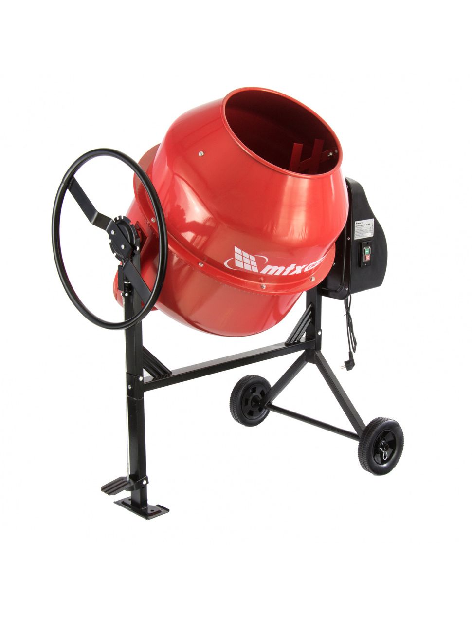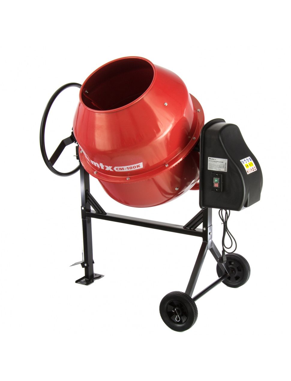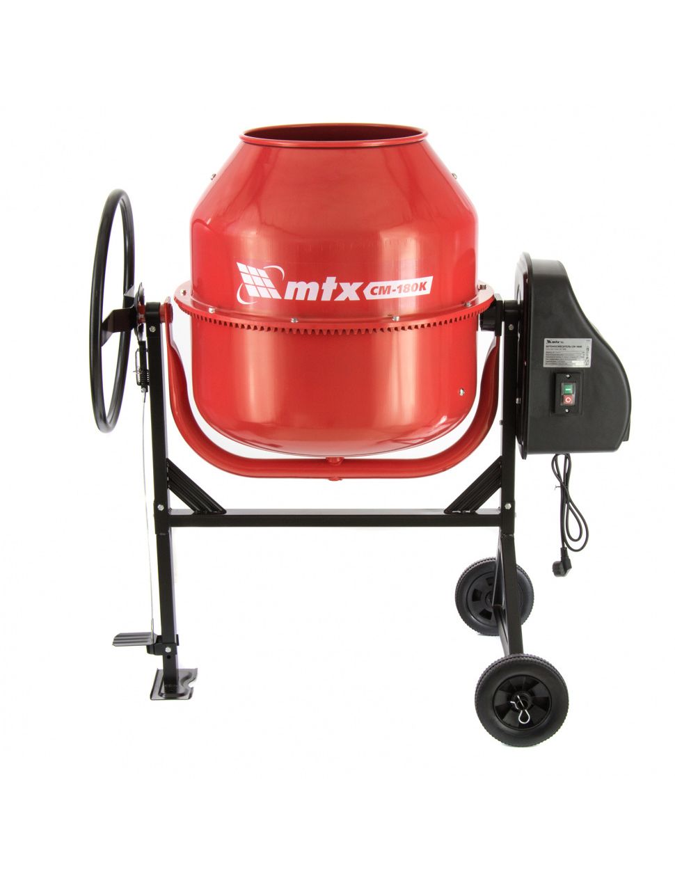 Бетоносмеситель MTX СМ-180К, 180 л, мощность 800 Вт 95484 используют для замешивания растворов и бетонных смесей. Модель широко используют во время строительных, ремонтных и отделочных работ. Опорная рама обладает стойкостью к механическим повреждениям.