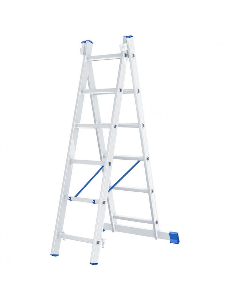 Алюминиевая двухсекционная лестница СИБРТЕХ 2х6 ступеней 97906 подходит для выполнения работ на высоте до 3 м. При изготовлении использовался прессованный алюминиевый профиль прямоугольного сечения. Это гарантирует изделию коррозионную стойкость и прочность. Защиту от скольжения на рабочих поверхностях обеспечивают заглушки и широкая траверса.