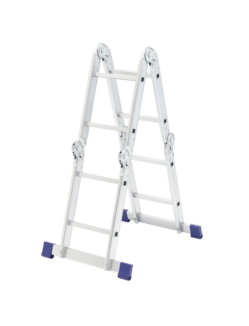 Шарнирная алюминиевая лестница СИБРТЕХ 4х2 97879 может трансформироваться в зависимости от выполняемых работ. Отличается надежной, устойчивой конструкцией, быстрой сменой положения за счет шарнирных механизмов. Защиту от скольжения на рабочих поверхностях обеспечивают заглушки и широкие траверсы.