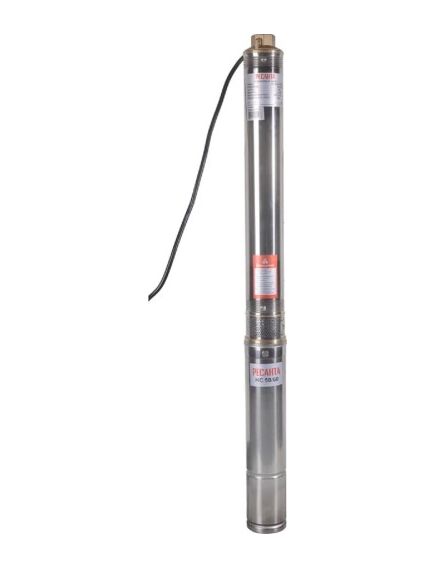 Устройство отличается конструктивными особенностями, характерными для насосного оборудования данного типа. Внутри корпуса из нержавейки расположены электродвигатель мощностью 800 Вт и блок с импеллерами, изготовленными из прочного пластика. Забор производится посередине: между данным блоком и мотором. Скважинный насос имеет высокую производительность - до 50 л/мин. Он может обеспечивать подъем воды на высоту до 60 м, при этом в ней допускаются примеси песка, содержание которого может достигать 180 г/м³. Температура перекачиваемой жидкости не должна превышать +35 градусов. Класс защиты данного устройства – IPX8: оно может работать длительное время при полном погружении без риска поломки. Модель имеет тепловую защиту, которая срабатывает при пересыхании источника или перегрузке агрегата. Термореле выключает двигатель, чтобы избежать возможного выхода из строя.