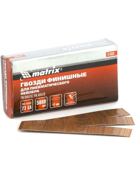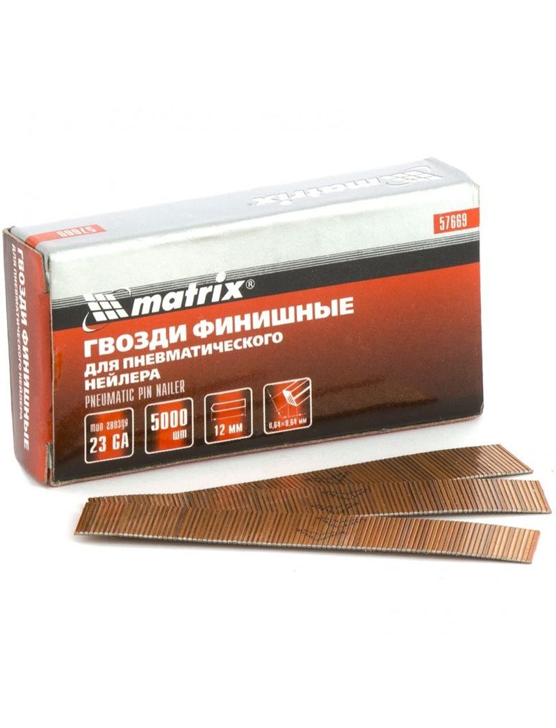 Гвозди для пневматического нейлера 23GA финишные 5000 шт 12 мм MATRIX 57669
