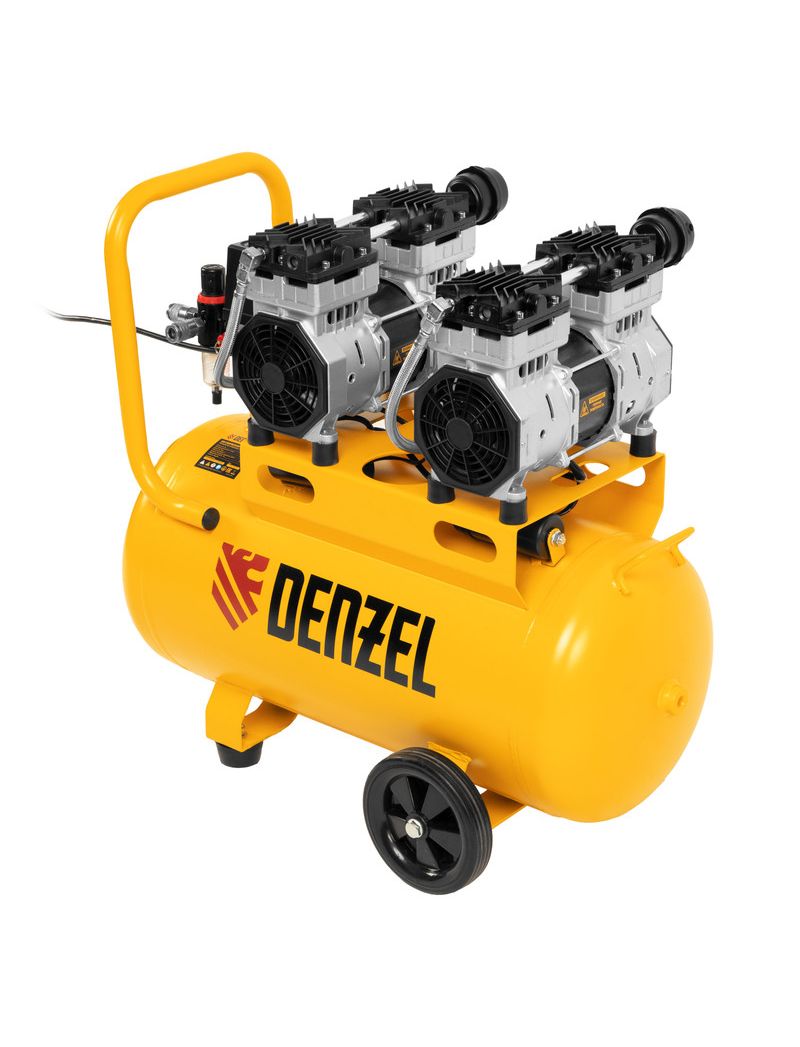 Безмасляный малошумный компрессор Denzel DLS 1500/50 58027 мощностью 1500 (2 х 750) Вт, объемом ресивера 50 л и производительностью 260 л/мин предназначен для обеспечения пневмоинструмента сжатым воздухом, подаваемым под давлением до 8 бар. Позволяет подключить пневматический заклепочник, дрель и т. д. Оптимален для работы с краскопультом и для продувки электронных компонентов, т. к. в сжатом воздухе отсутствуют частицы масла. Компрессор пригодится в мастерской, гараже, на строительной площадке.