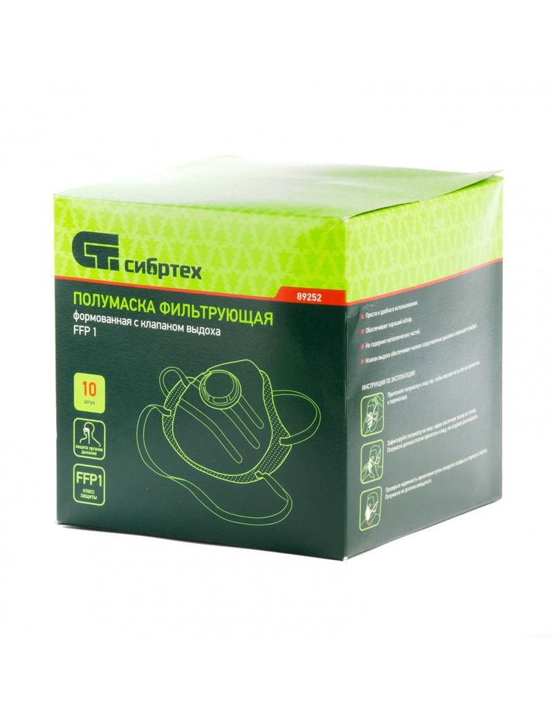 Респиратор торговой марки «СИБРТЕХ» с клапаном выдоха используется для защиты органов дыхания от вредных примесей, содержащихся в атмосфере (пыль, дым, твердые и жидкие аэрозольные частицы).