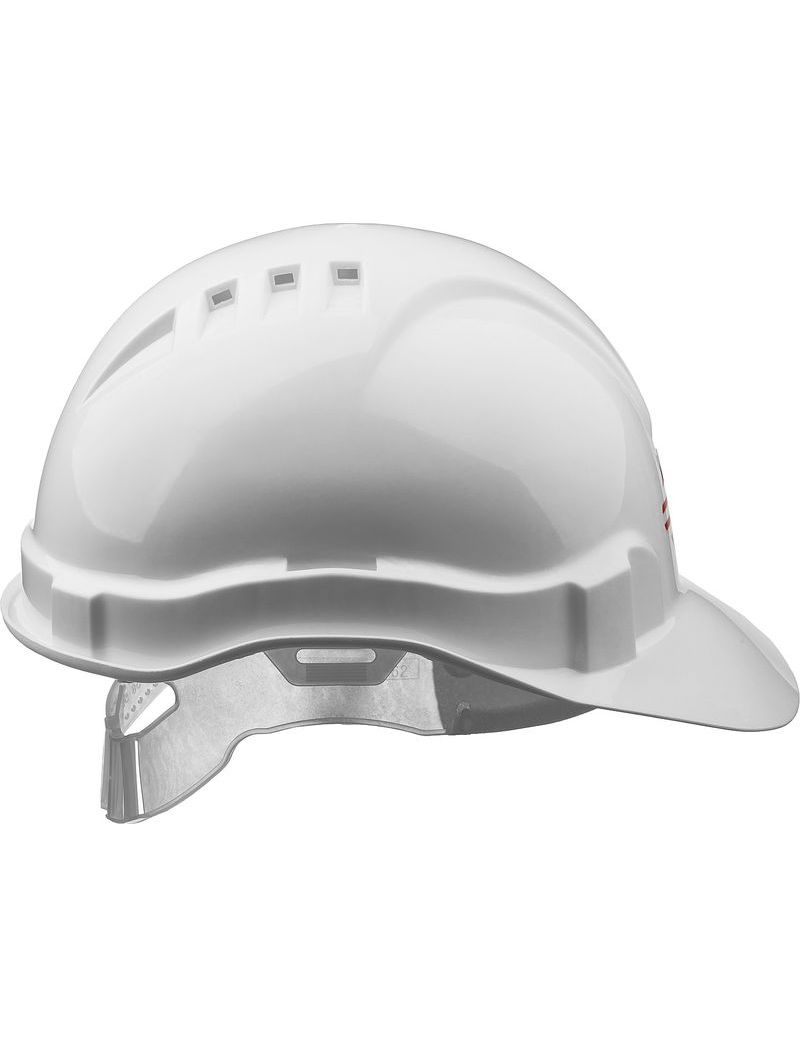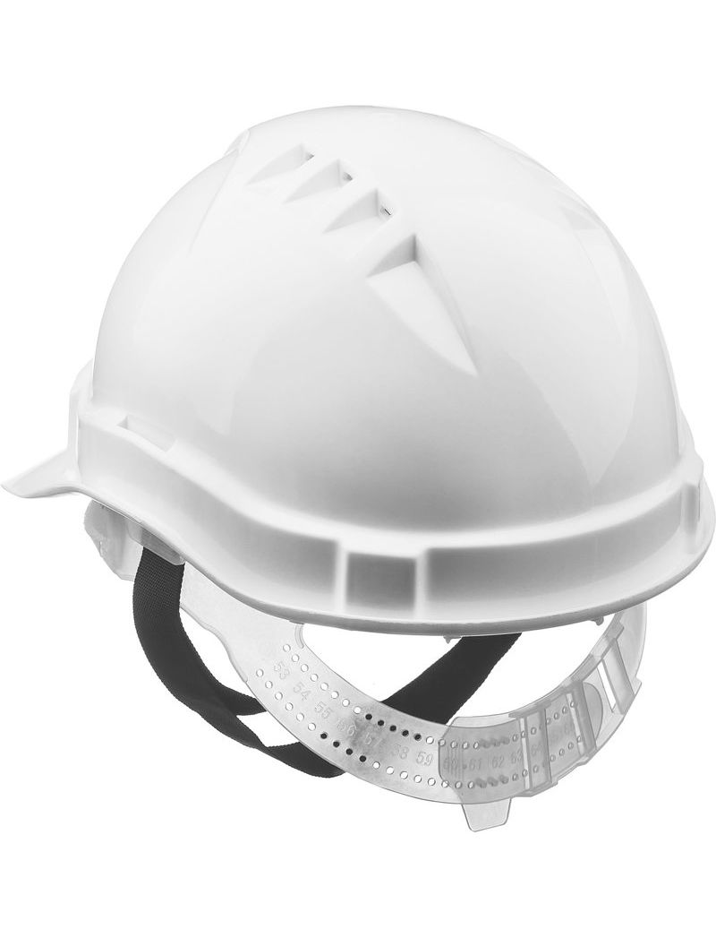 Белая защитная каска Зубр МАСТЕР 11090-2_z01 - это надежное средство защиты головы рабочего от механического воздействия при падении тяжелых предметов, от агрессивных химических веществ, брызг воды, а также электрического тока. Каска оснащена текстильным оголовьем и вентиляционными отверстиями для более комфортного ношения. Фиксация изделия на голове производится при помощи ленточного механизма. По размеру головы каска может регулироваться от 52 до 62 см.