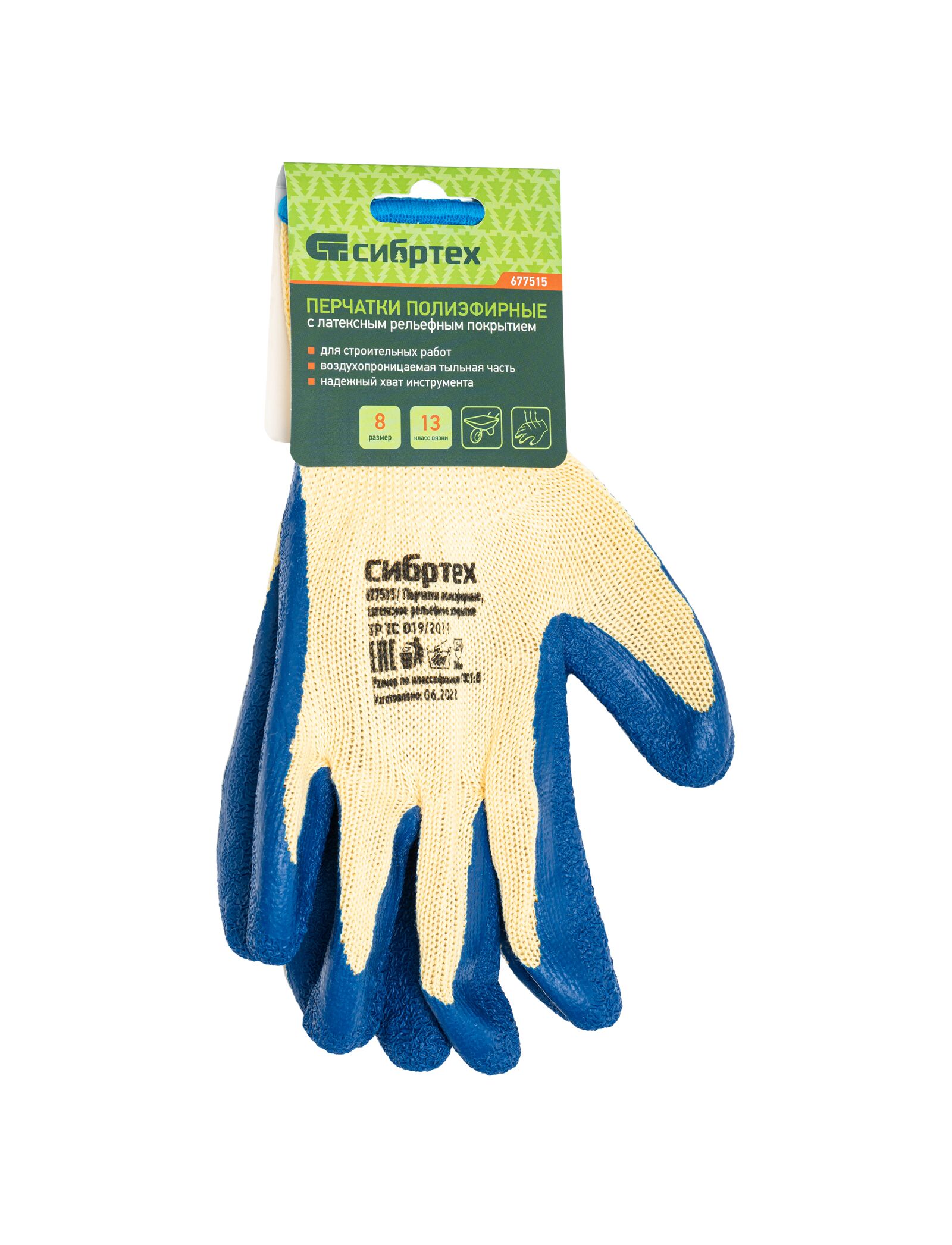 Трикотажные полиэфирные перчатки Сибртех с латексным рельефным покрытием предназначены для защиты рук от механических воздействий и общепроизводственных загрязнений при выполнении хозяйственных, ремонтных, строительных работ.