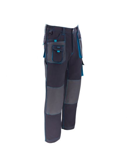 Универсальные брюки Gross 90351 размера XXXL подойдут для выполнения различных видов работ в летний сезон или в отапливаемом помещении. Они обеспечивают надежную защиту мастера от грязи, мелких повреждений и ссадин. В брюках предусмотрены защитные нашивки и 12 карманов для удобства работы.