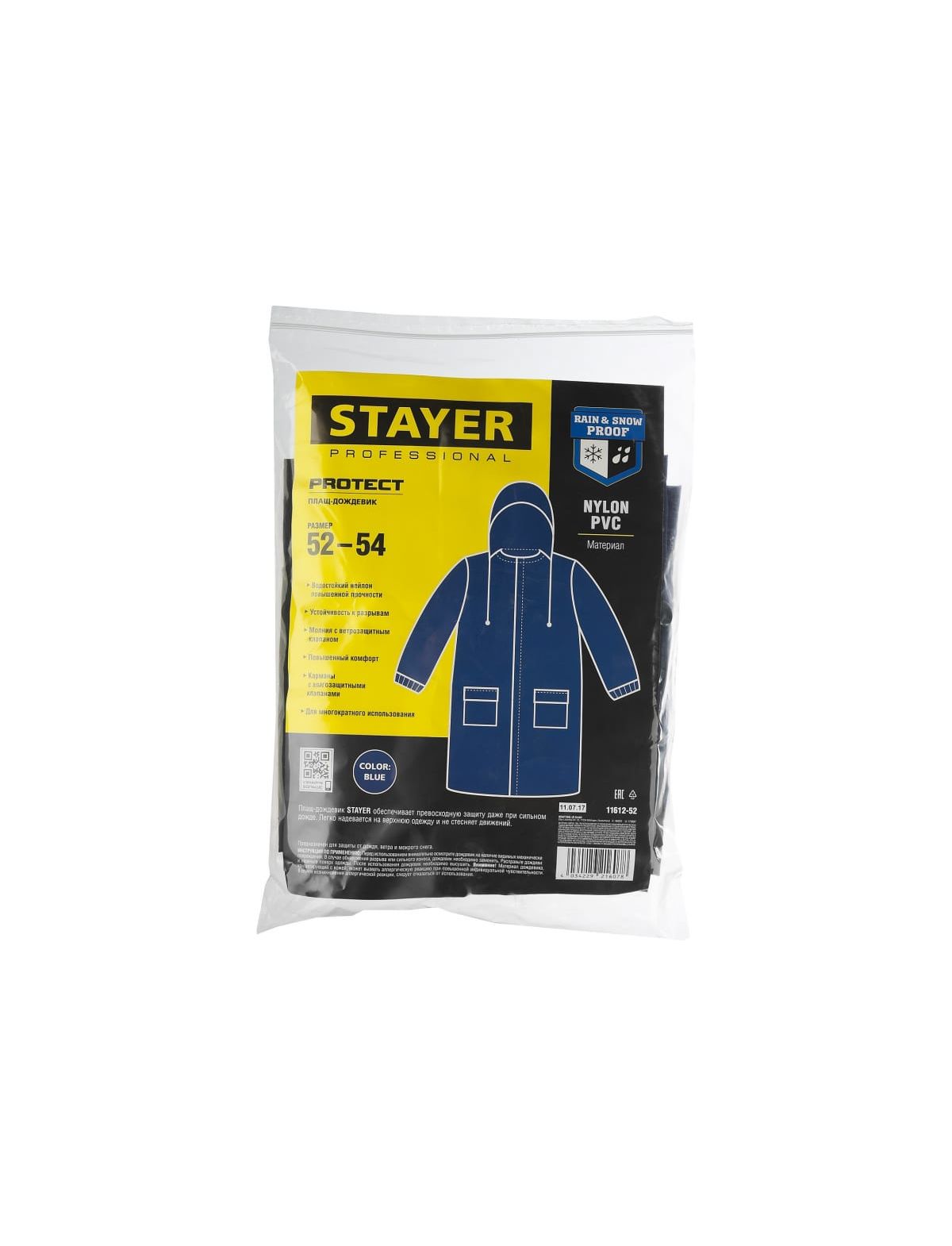 Плащ-дождевик STAYER 11612-52, нейлоновый на молнии, синий цвет, размер 52-54 предназначен для защиты от дождя и ветра. Легко одевается поверх одежды, не сковывает движения. Это гарантирует комфорт во время использования.