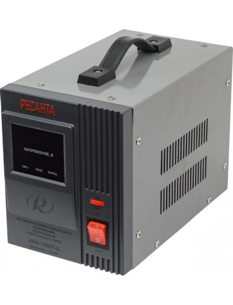 Стабилизатор напряжения Ресанта АСН-1500/1-Ц мощностью 1500 Вт, с воздушным охлаждением и LED-дисплеем обеспечит выравнивание выходного напряжения и надежную защиту бытовых электроприборов, промышленного оборудования от скачков напряжения и поломки.