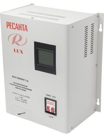 Стабилизатор напряжения 1-фазный РЕСАНТА (8 кВт, вх.140-260В, вых.220В±8%) АСН-8000Н/1-Ц (63/6/17)