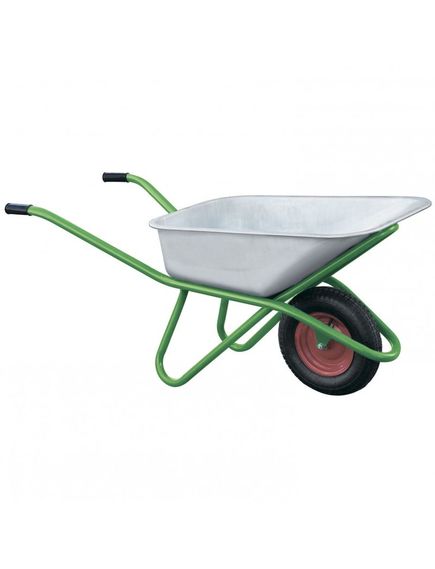 Легкая и маневренная садовая тачка оснащена пневматическим колесом.