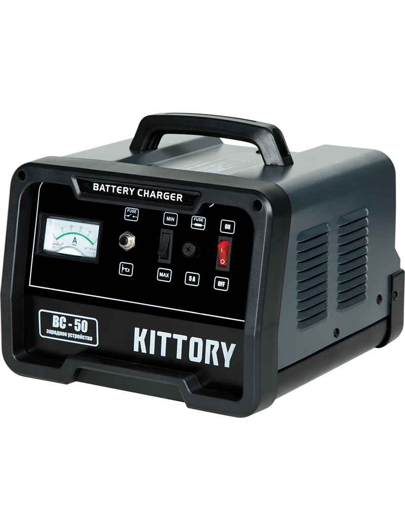Зарядное устройство KITTORY BC-50 предназначено для заряда свинцово-кислотных стартерных аккумуляторных батарей напряжением 12 и 24 В, используемых для электроснабжения различных видов транспортных средств и механизмов.