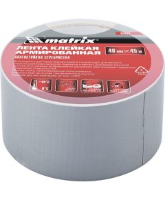 Влагостойкая серебристая клейкая армированная лента Matrix 89069, 48 мм х 45 м, позволяет решить множество задач в быту и на производстве. С ее помощью можно осуществить мелкий ремонт различных изделий, герметизировать соединения, предотвратить попадание пыли и воды на детали и т.д.
