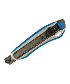 Нож 18 мм выдвижное трапециевидное лезвие, эргономичная двухкомпонентная рукоятка MATRIX 78926 подходит для разрезания бумаги, картона, линолеума, кожи и прочих материалов. Корпус выполнен из цинкового сплава, не подвержен появлению коррозии, имеет удобную форму и нескользящее обрезиненное...