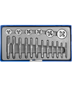Набор предназначен для нарезания и калибрования внутренней и внешней метрической и трубной резьбы в сквозных и глухих отверстиях в сталях с пределом прочности до 900Н/мм2, цветных металлах, пластике. Состав набора: Метчики для нарезания метрической резьбы: 5х0.8, 5х0.9, 6х1.0, 6х0.75,...