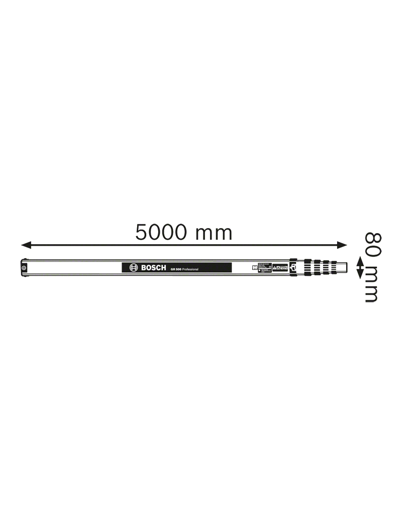 Нивелирная рейка Bosch GR 500 - это изделие, предназначенное для оптических нивелиров. Оно состоит из 5 секций, общей длиной 5 метров. Рейка изготовлена из прочного и легкого алюминиевого сплава.