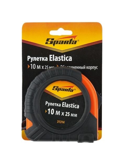 Рулетка 10 м х 25 мм Elastica SPARTA 31314 позволяет с легкостью определить размеры поверхностей. Корпус из пластика обрезинен, что снижает вероятность повреждений при падении. Возвратная пружина способствует быстрому сматыванию ленты.