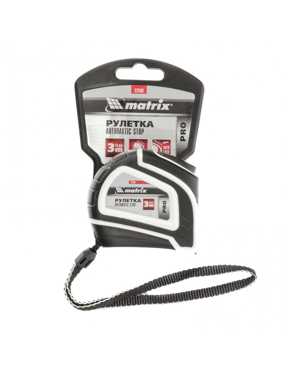 Рулетка 3 м х 16 мм двухкомпонентный корпус автоматическая фиксация MATRIX 32550