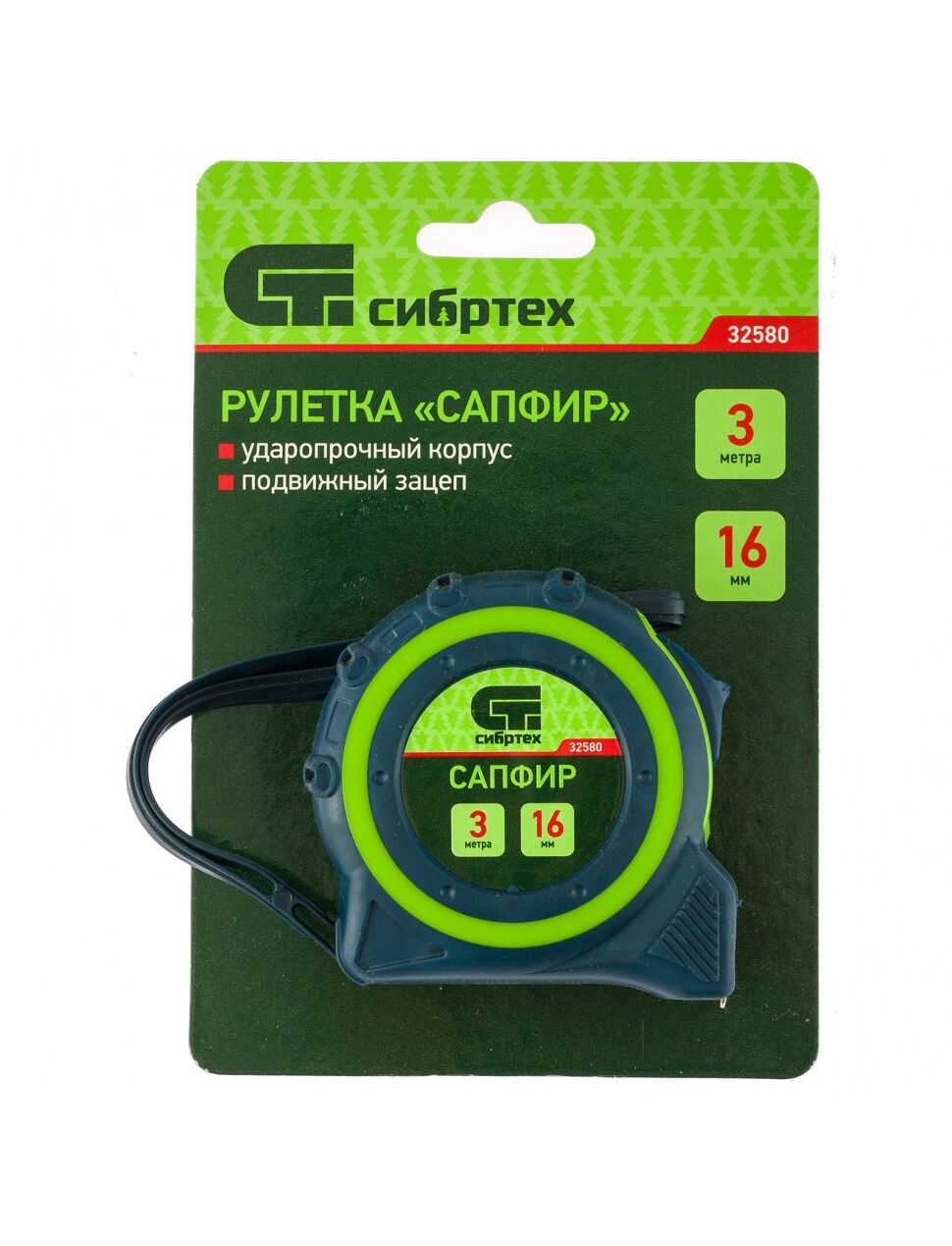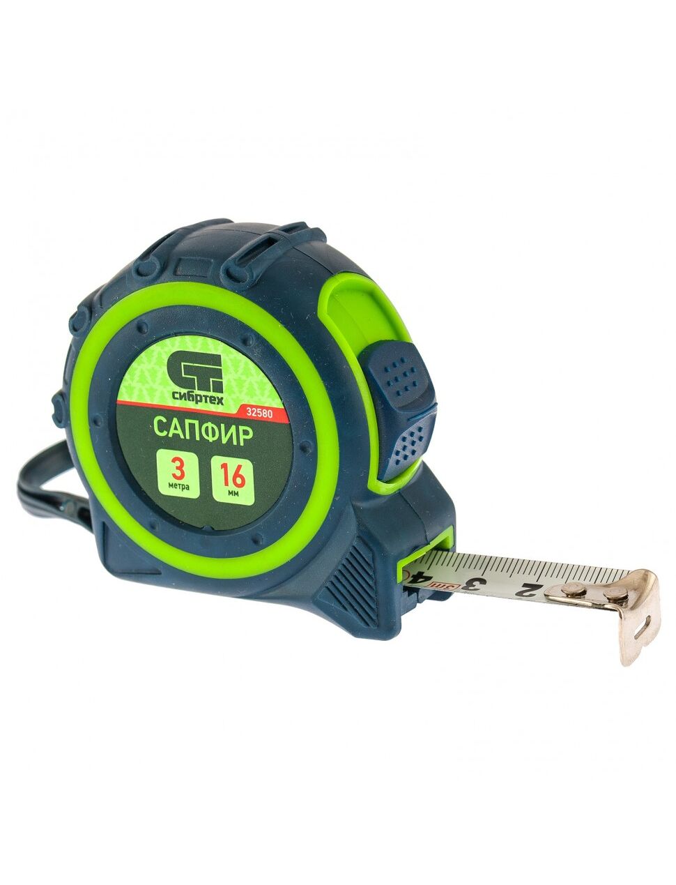 Рулетка 3 м х 16 мм Сапфир двухкомпонентный корпус СИБРТЕХ 32580