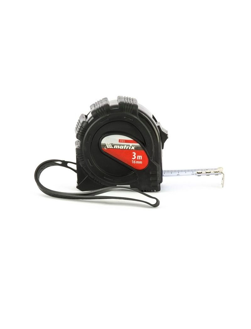 Рулетка 3 м х 16 мм Black обрезиненный корпус MATRIX 31013
