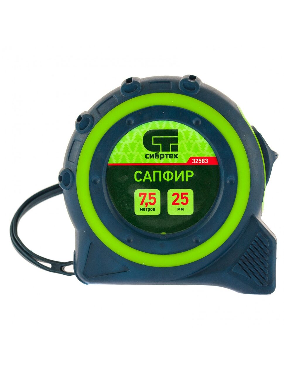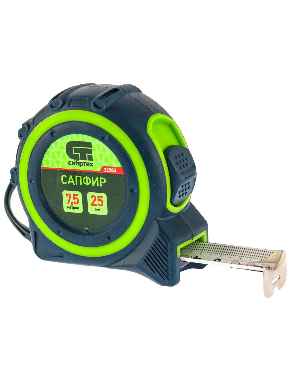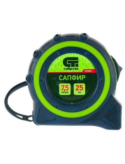 Рулетка 7,5 м х 25 мм Сапфир двухкомпонентный корпус СИБРТЕХ 32583