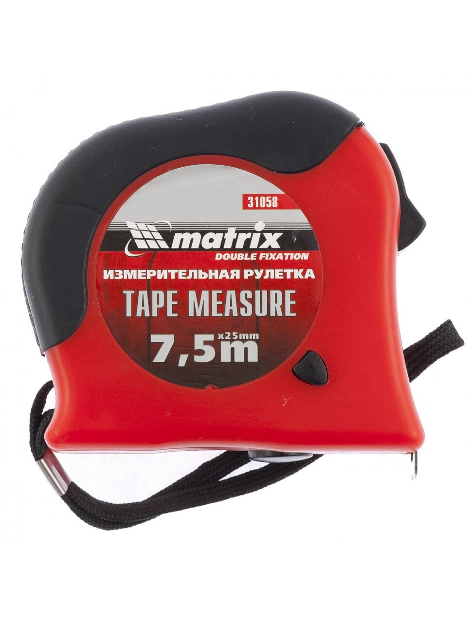 Рулетка 7,5 м х 25 мм Double fixation обрезиненный корпус двойная плавная фиксация MATRIX 31058