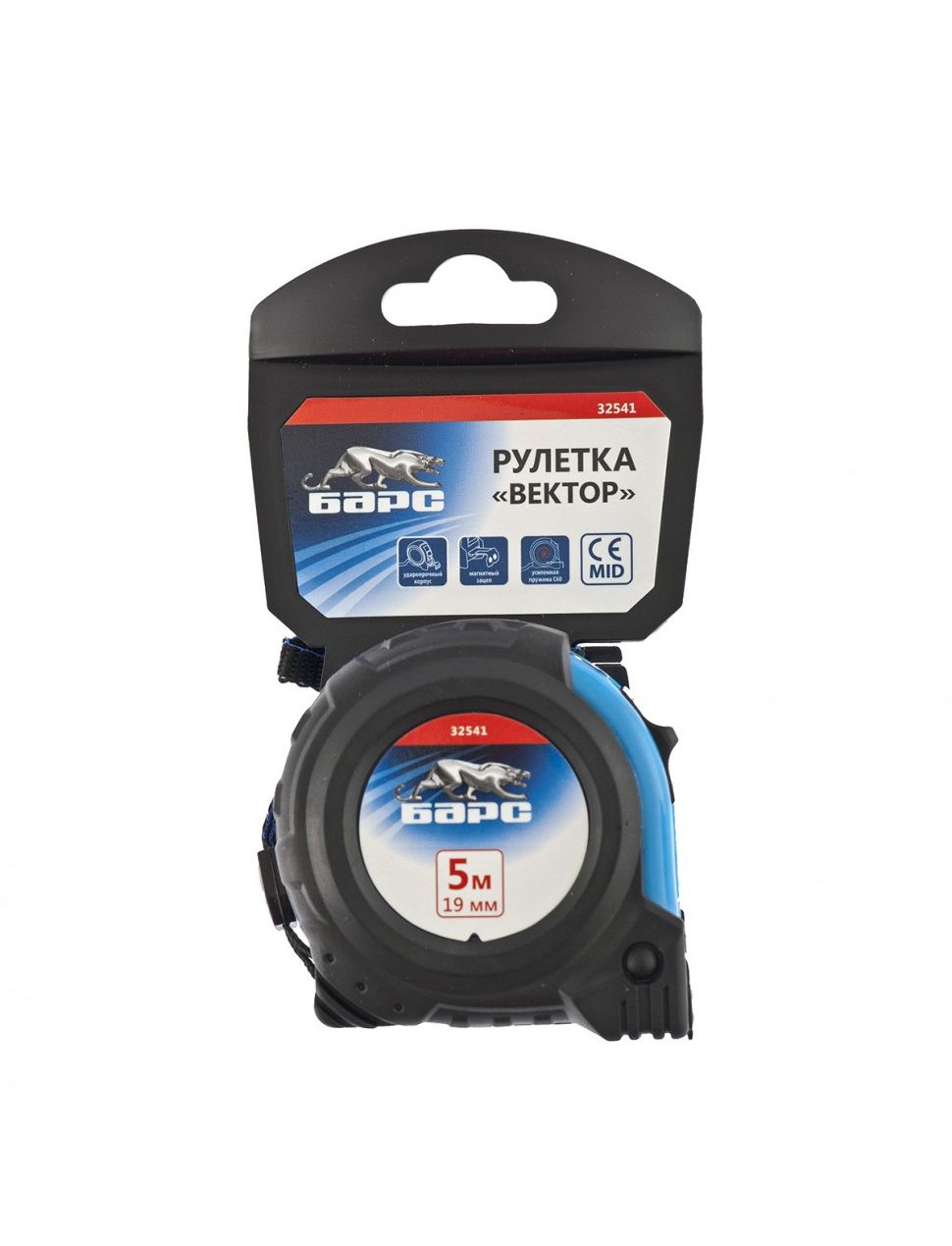 Рулетка 5 м х 19 мм Вектор утолщенное полотно магнитный зацеп обрезиненный корпус БАРС 32541