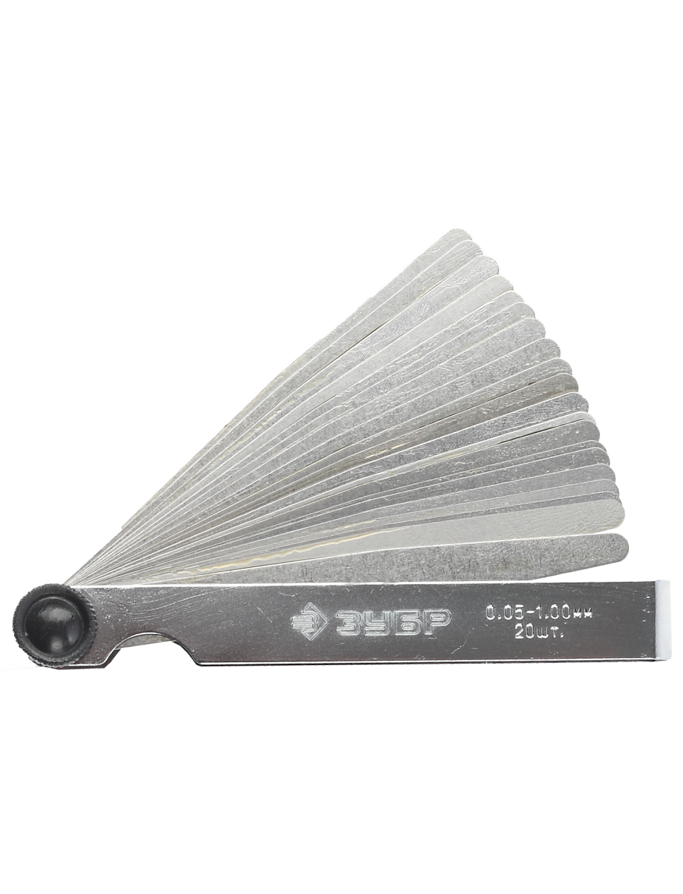 Набор автомобильных щупов 0,05 - 1,00 мм ЗУБР 4325-H20_z01, 20 шт. пригодится в сборочных, ремонтных работах. Они позволяют определить какой зазор между поверхностями. При изготовлении использовалась инструментальная сталь, что гарантирует долгий срок службы. Для точности зачастую используют несколько пластин. Набор состоит из 20 автомобильных щупов. Шаг измерения составляет 0.05 мм.
