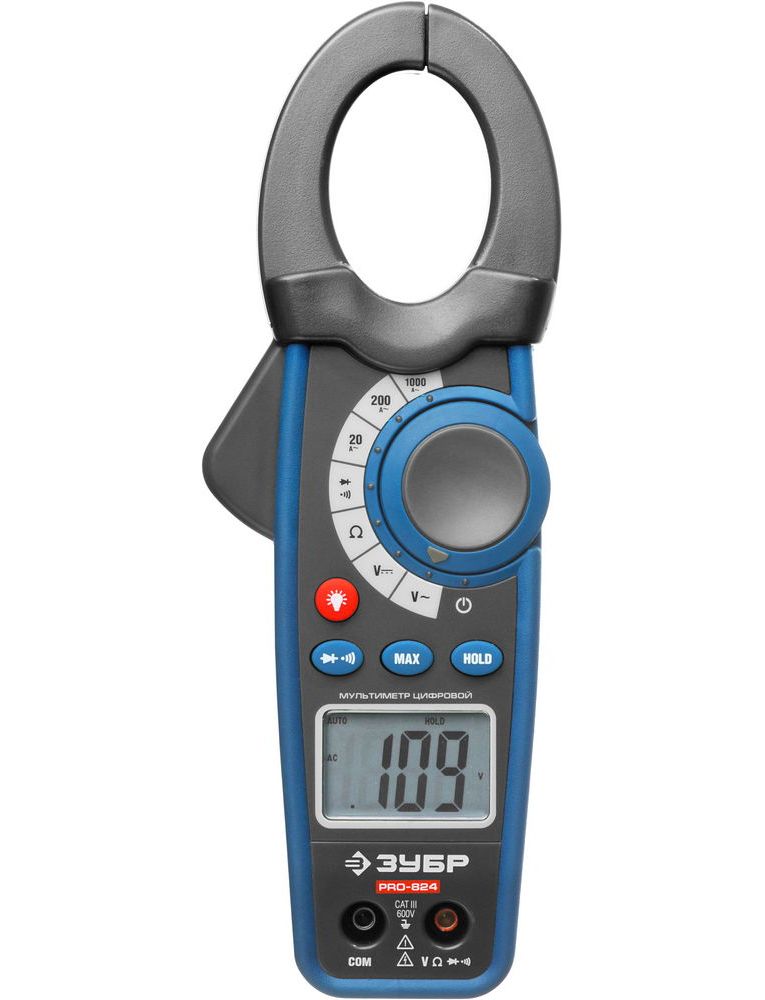 Токоизмерительные клещи Зубр ПРОФИ PRO-824 59824 используются для измерения постоянного и переменного напряжения, сопротивления, переменного тока, а также для проверки целостности цепи и исправности диодов. Полученные результаты выводятся на крупный ЖК-дисплей с подсветкой, позволяющей работать даже в слабоосвещенных местах. Устройство подходит как для бытового, так и профессионального применения. В случае длительного бездействия прибор автоматически выключается, что экономит заряд элементов питания.