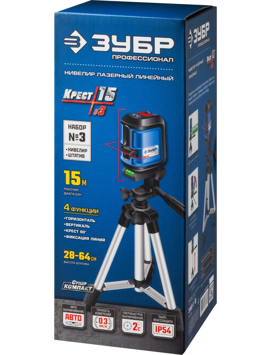 Уровень лазерный ЗУБР (дальн. 15 м, погрешн. 0,3 мм/м, класс 2) КРЕСТ-15 (34902-3_z01)