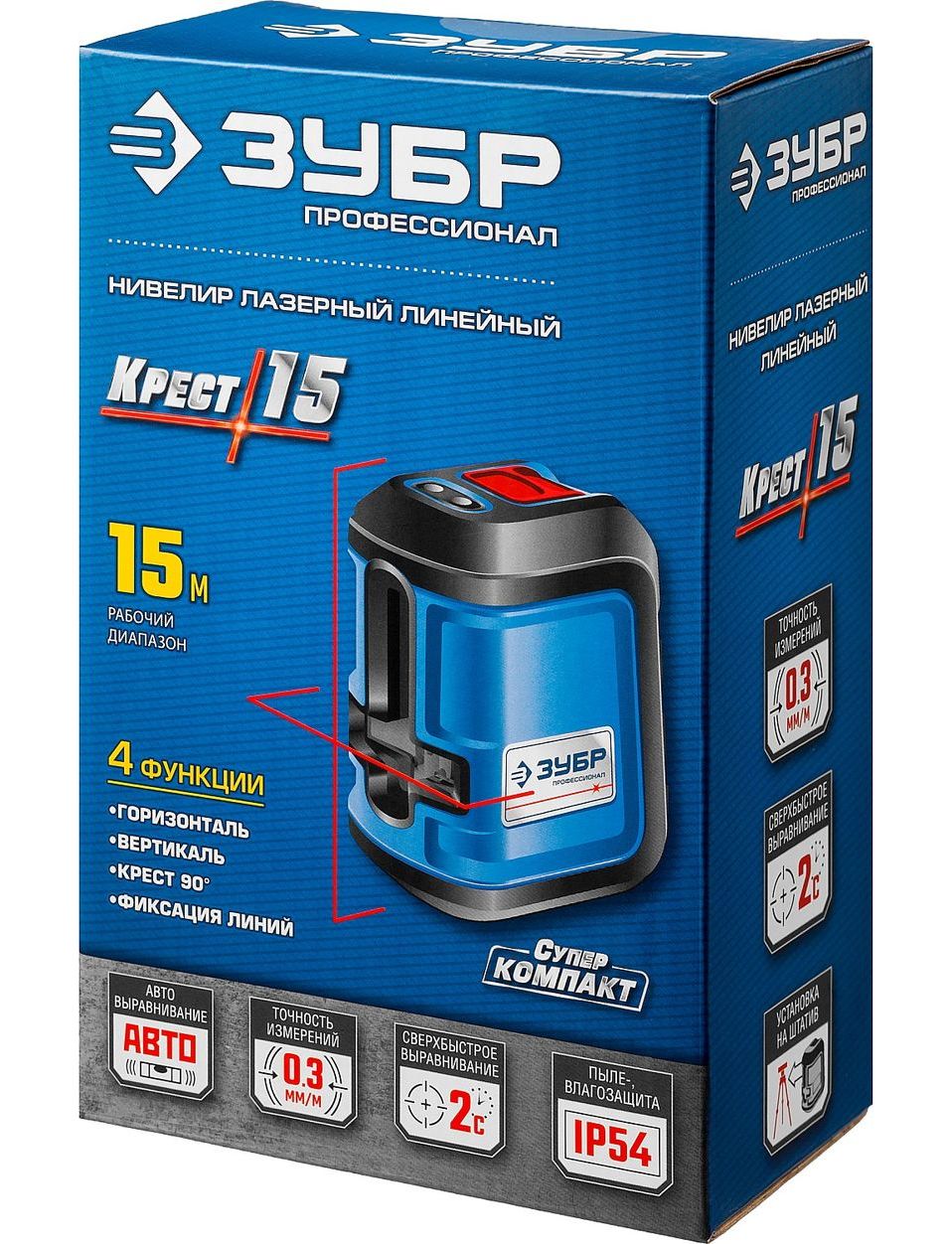 Уровень лазерный ЗУБР (дальн. 15 м, погрешн. 0,3 мм/м, класс 2) КРЕСТ-15 (34902_z01)