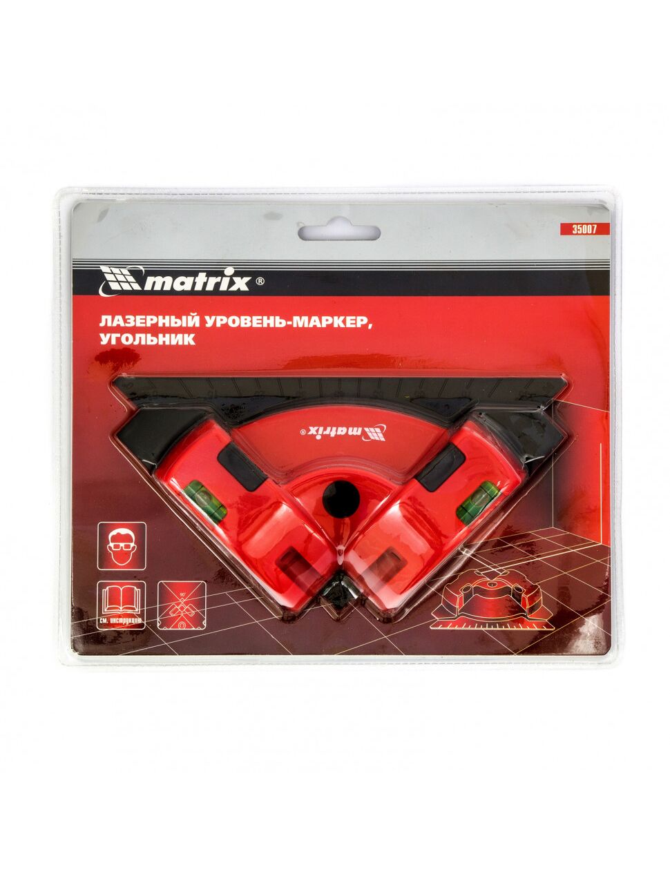 Лазерный уровень MATRIX 35007 - это простой в обращении прибор, который проецирует две перпендикулярные линии. На корпусе расположены два пузырьковых уровня - для ручного выравнивания устройства. Для более удобного пользования инструмент оснащен шкалой. На подошве аппарата находятся присоски, которые фиксируют его на поверхности.
